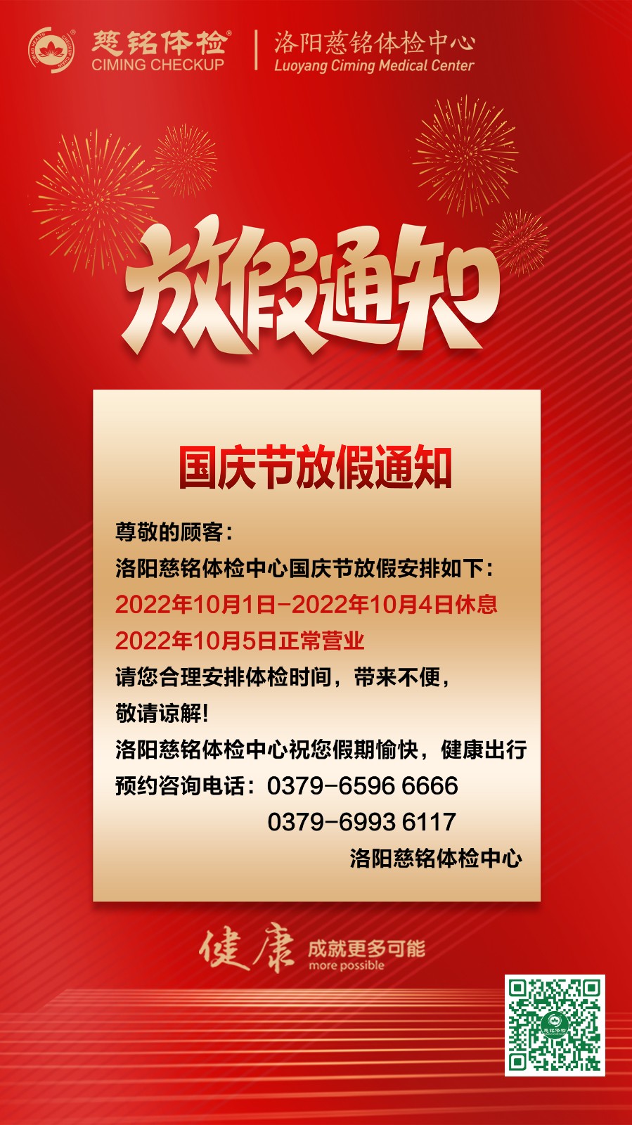 洛阳慈铭体检中心国庆节放假通知以及10月5日赠送活动