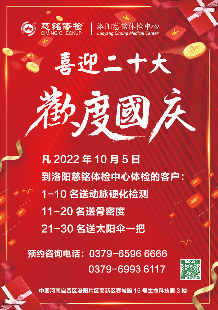 喜迎二十大,欢度国庆,10月5日洛阳慈铭体检中心赠送活动: